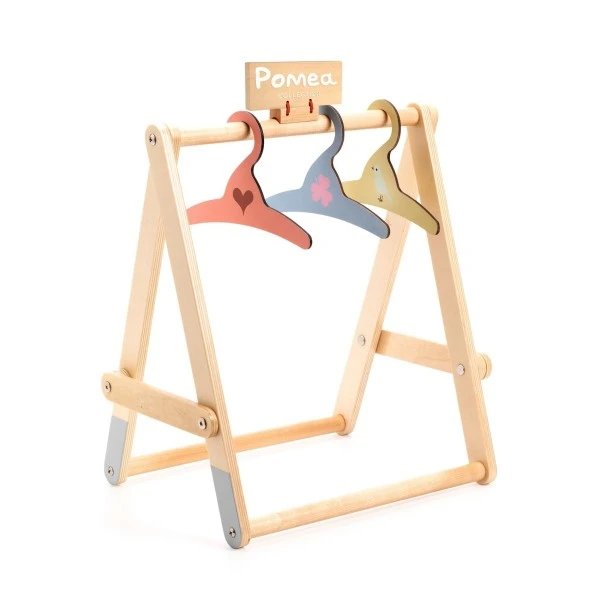 • Holzkleiderständer und 3 bunte Holzkleiderbügel im Set enthalten.