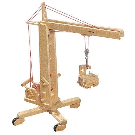 Der Turm des tollen großen Holz-Krans von Fagus, ist drehbar und steht auf einen Fuß mit 4 Rädern. Stolze 75 cm ist der Kran hoch und somit perfekt für die große Baustelle im Kinderzimmer geeignet.