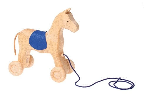 Das Nachzieh-Pferdchen hat eine blaue Schnur.