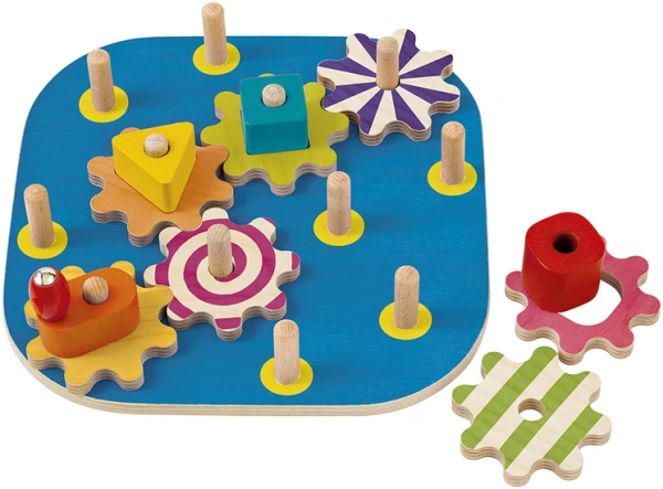 Das Holzspielzeug Kurbelspaß von Selecta lädt zum Probieren und Experimentieren ein. Kunterbunte Zahnräder und viele andere Module lassen sich in vielen Kombinationen zusammenlegen. Ein tolles kleines Spielvergnügen!