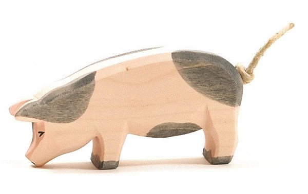Fröhlich schnüffelt das gefleckte Schwein auf dem Bauernhof. Die tollen Figuren von Ostheimer sind mit viel Liebe von Hand gestaltet. Kinder können in unterschiedliche Rollen schlüpfen und fantasievoll und lebhaft spielen. Die Figuren haben eine tolle Haptik und werden schnell zum Lieblingsspielzeug!