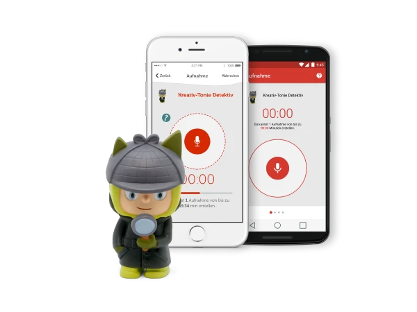 Mit der dazugehörigen, kostenlosen Smartphone-App können eigene Sprachaufnahmen aufgezeichnet und dem Kreativ-Tonie zugewiesen werden.