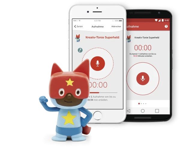 Mit der dazugehörigen, kostenlosen Smartphone-App können eigene Sprachaufnahmen aufgezeichnet und dem Kreativ-Tonie zugewiesen werden.